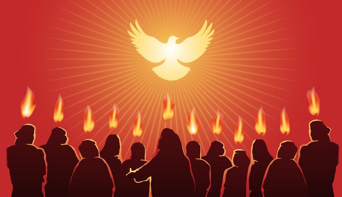 “Cuando llegó el día de Pentecostés, estaban todos reunidos en el mismo lugar. De repente vino del cielo un ruido, como el de una violenta ráfaga de viento, que llenó toda la casa donde estaban, y aparecieron unas lenguas como de fuego que se repartieron y fueron posándose sobre cada uno de ellos. Todos quedaron llenos del Espíritu Santo y comenzaron a hablar en otras lenguas, según el Espíritu les concedía que se expresaran”.