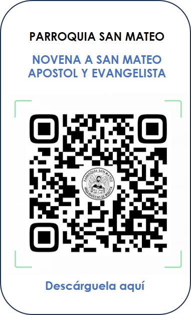 A continuación encontrará el documento completo de la Novena a San Mateo, disponible para que pueda descargarlo y acompañarnos diariamente en este camino a la Fiesta de nuestro Santo Patrono, la cual celebraremos el día Domingo 21 de septiembre a las 12m en compañía del Señor Vicario Episcopal - Monseñor Julio Hernándo Solórzano.