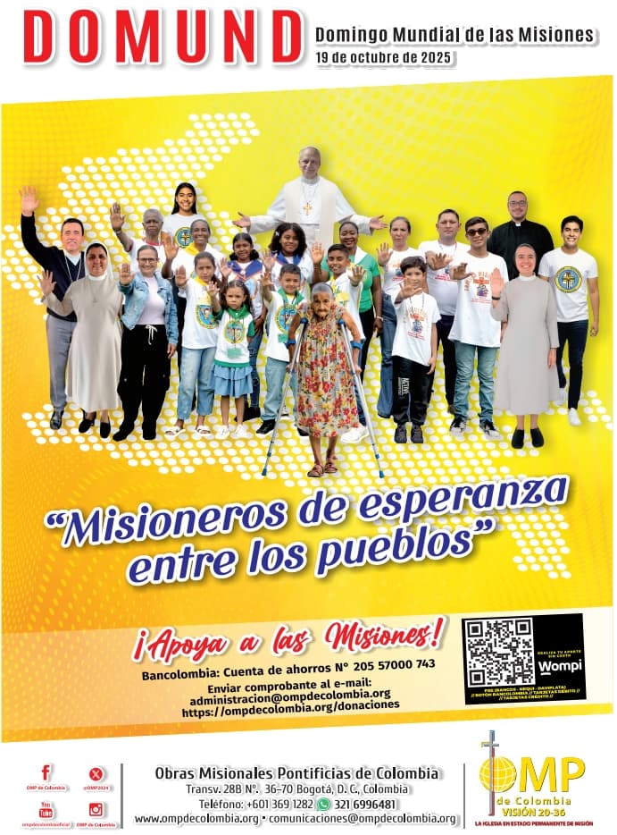 La Arquidiócesis de Bogotá se prepara para vivir con fe, alegría y compromiso el Octubre Misionero 2025, bajo el lema: “Misioneros de esperanza entre los pueblos”. Este tiempo privilegiado nos recuerda que la misión es tarea de todos los bautizados, y que Cristo Resucitado nos confía la hermosa responsabilidad de animar y formar el Espíritu Misionero Universal en nuestras comunidades.