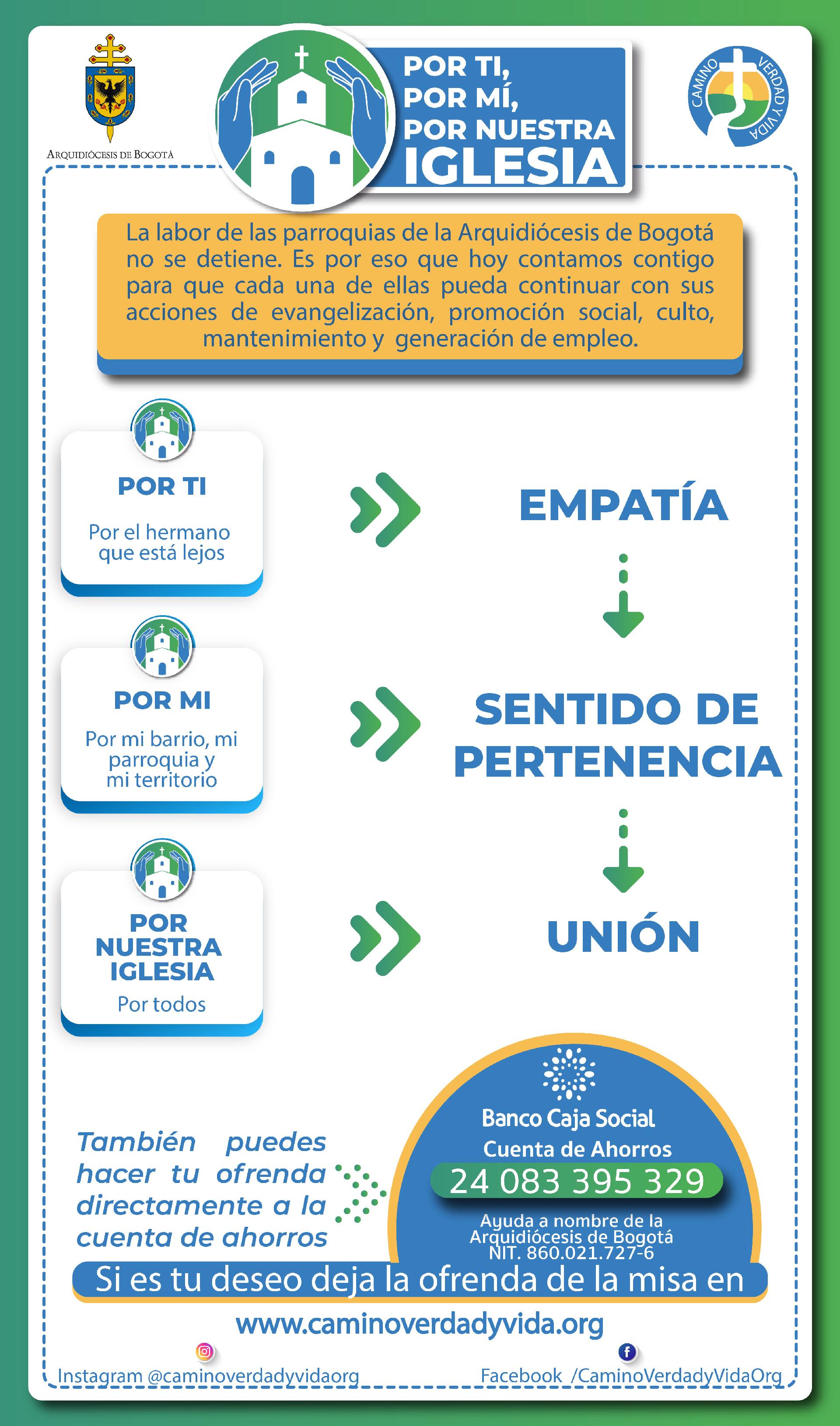 Centro de información Yo quiero Noticias Boletines Eventos Artículos Canonización Mensajes del Señor Cardenal Cartas pastorales Homilías Mensajes La voz del pastor Documentos del Vaticano NoticiasPor ti, por mí, por nuestra Iglesia27 de Noviembre de 2020En la Arquidiócesis de Bogotá caminamos hacia una evangelización más misionera, más en salida, más en sintonía con lo que Dios quiere de nosotros y con lo que nuestra…Mayor Información:https://caminoverdadyvida.org/ Like 0 Dislike 0 Noticias relacionadas Archivo del Plan de Predicación - 2024-2025 Tiempo para nutrir, cuidar y testimoniar la fe La Arquidiócesis de Bogotá celebró la ordenación de nuevos sacerdotes y diáconos