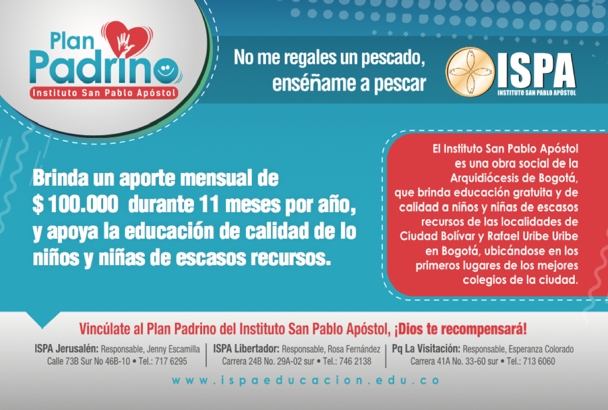Centro de información Yo quiero Noticias Boletines Eventos Artículos Canonización Mensajes del Señor Cardenal Cartas pastorales Homilías Mensajes La voz del pastor Documentos del Vaticano NoticiasVincúlate al plan padrino27 de Mayo de 2019 Like 0 Dislike 0 Noticias relacionadas Archivo del Plan de Predicación - 2024-2025 Tiempo para nutrir, cuidar y testimoniar la fe La Arquidiócesis de Bogotá celebró la ordenación de nuevos sacerdotes y diáconos