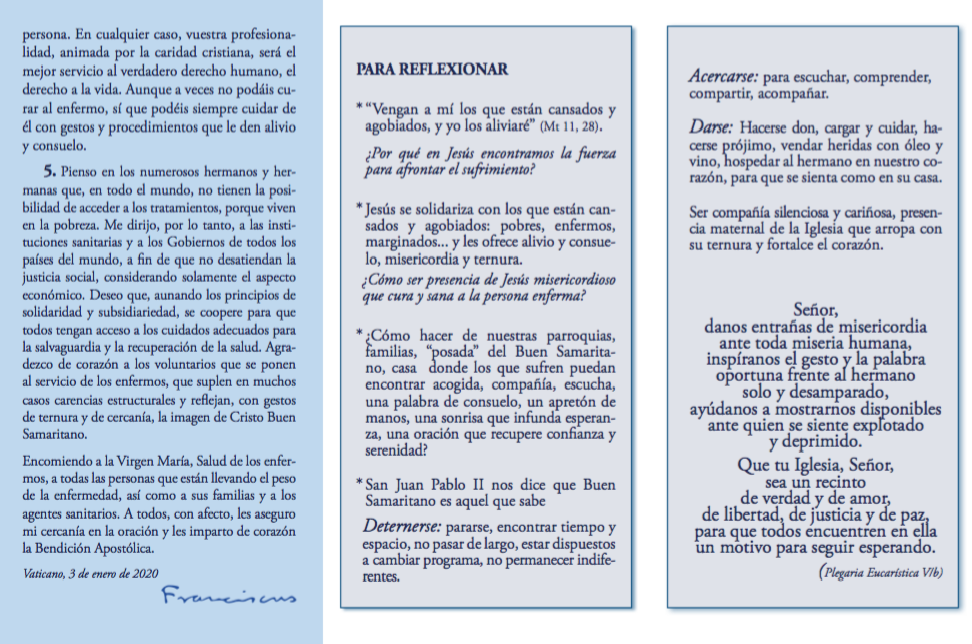 Centro de información Yo quiero Noticias Boletines Eventos Artículos Canonización Mensajes del Señor Cardenal Cartas pastorales Homilías Mensajes La voz del pastor Documentos del Vaticano NoticiasXXVIII Jornada mundial del enfermo, mensaje del Santo Padre Francisco11 de Febrero de 2020 Like 0 Dislike 0 Noticias relacionadas Archivo del Plan de Predicación - 2024-2025 Tiempo para nutrir, cuidar y testimoniar la fe La Arquidiócesis de Bogotá celebró la ordenación de nuevos sacerdotes y diáconos